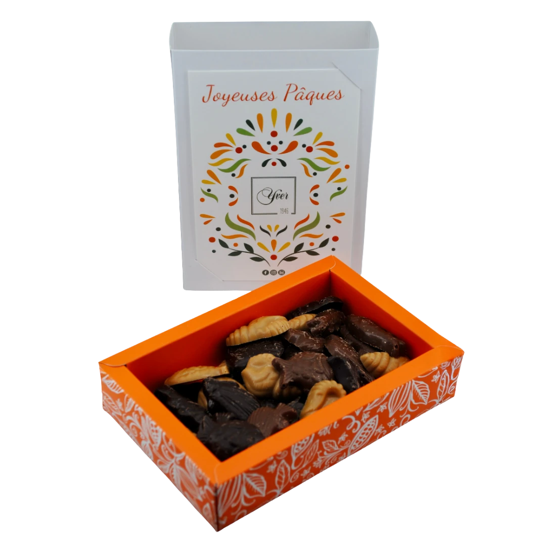 Coffret de friture : chocolat noir, lait et zéphyr caramel de la collection Pâques !